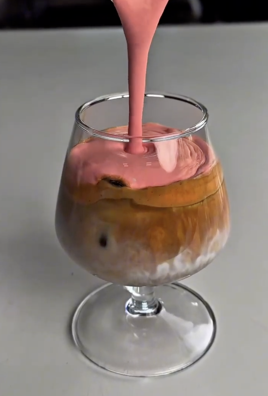 Use a froth tool and whip (3 tbsp heavy whipping cream, 2 tbsp whole milk, 1 tbsp powdered sugar, and 1 oz blackberry syrup) until it hits that thick, creamy texture.