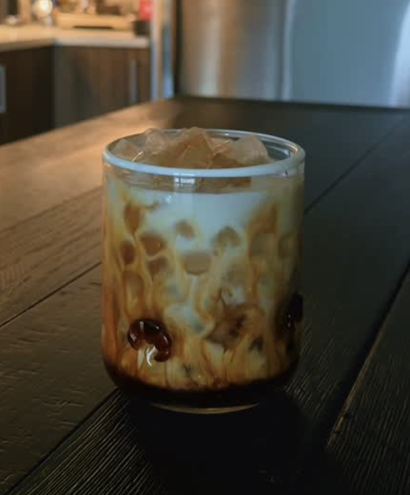 Brew 2 shots of espresso directly over the mixture and stir well.